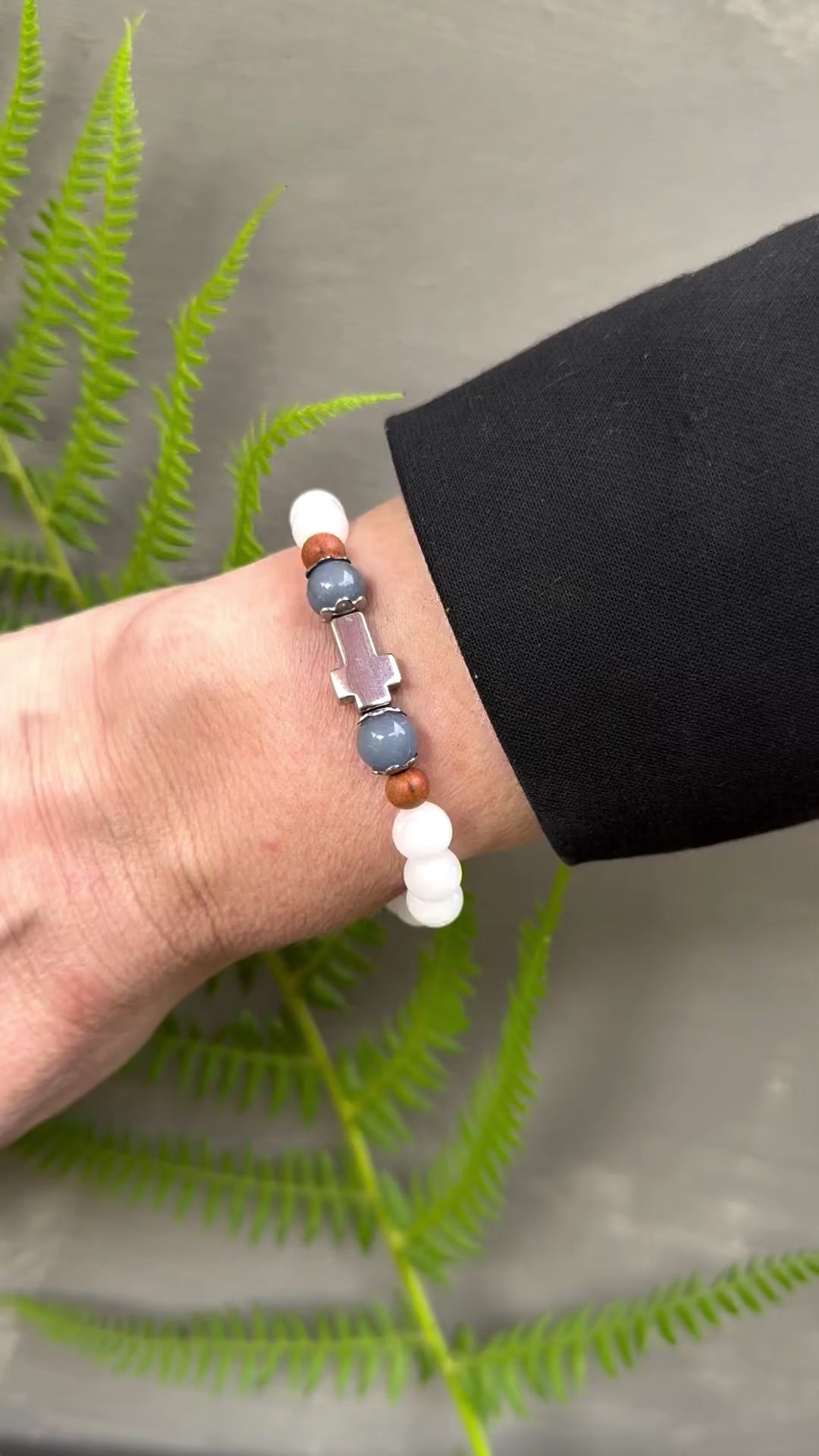 - Stříbrný křížek z nerezové oceli – symbol víry, ochrany a vnitřní síly.